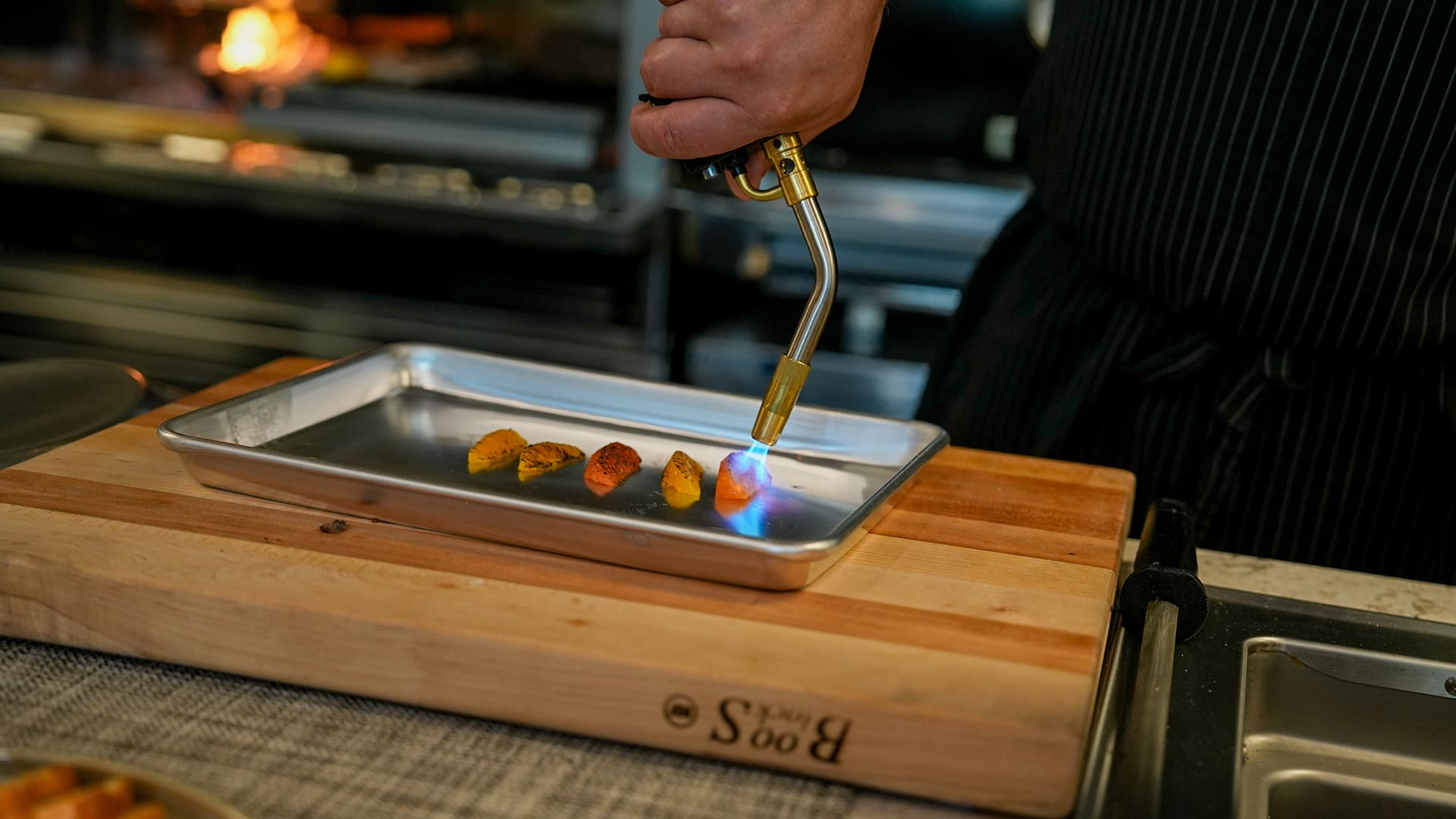 The heart of the restaurant is a central charcoal- and wood-fired grill, and Williams is deliberate about why. At home on summer weekends, he’s grilling. On Thanksgiving, he’s cooking the turkey on the barbecue. Executive Chef Lee Hinton, who has worked alongside Williams at Allora for eight years, shares the instinct. He hikes into the mountains, builds fires at 10,000 feet and cooks for friends in the snow. When the two started talking about what their next restaurant would be, Williams said, they were both drawn to fire.