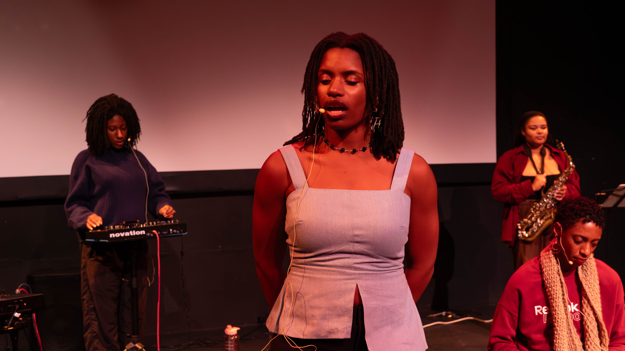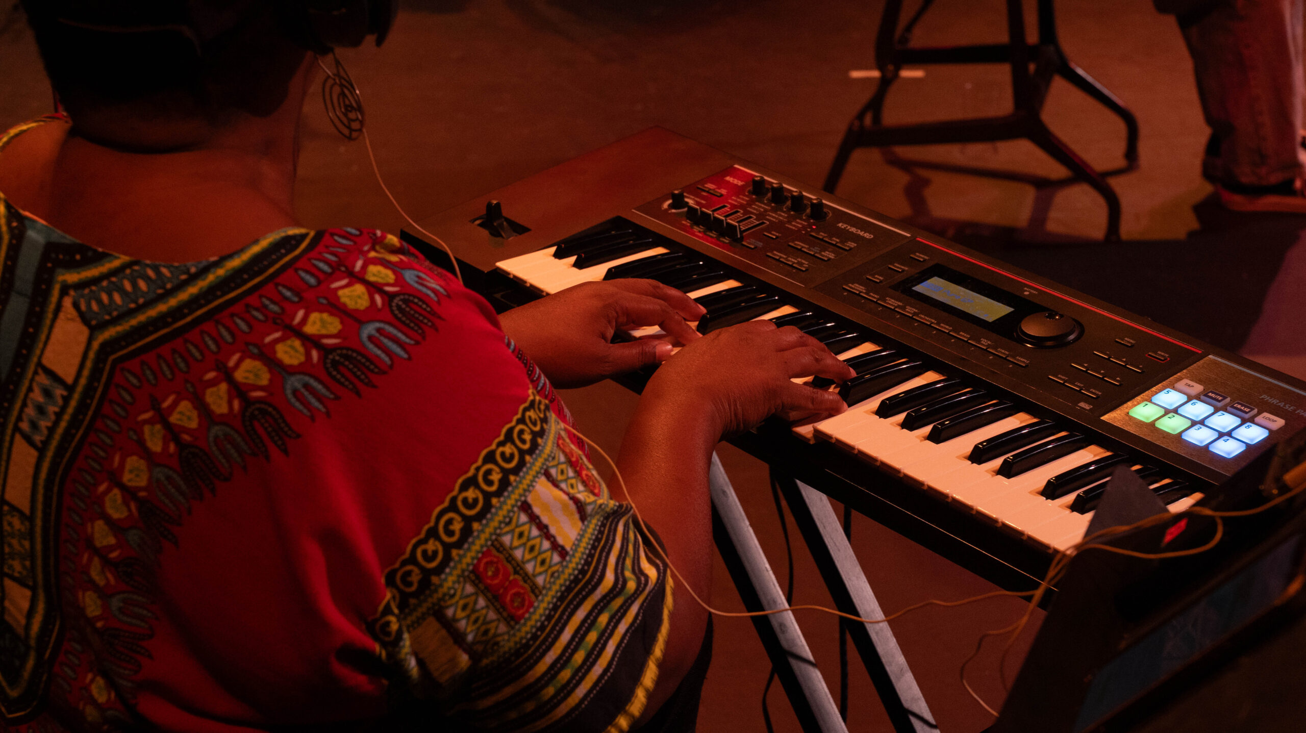 MmaMma Laura — percussionist, spoken word artist and Natachi’s poet mentor during high school — was not used to working with a group of musicians so closely before joining “Fire Breathing in the Wild.”