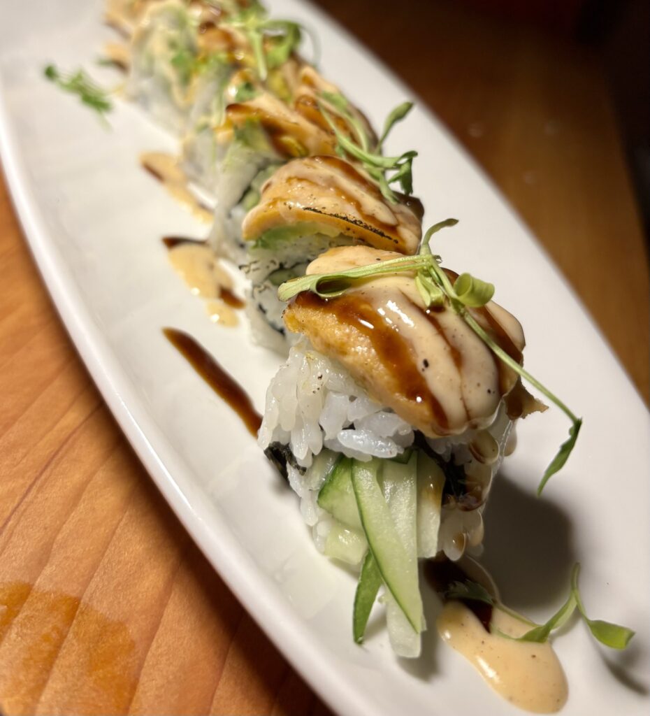 Village of Om’s Oshi salmon roll. (Benjy Egel)