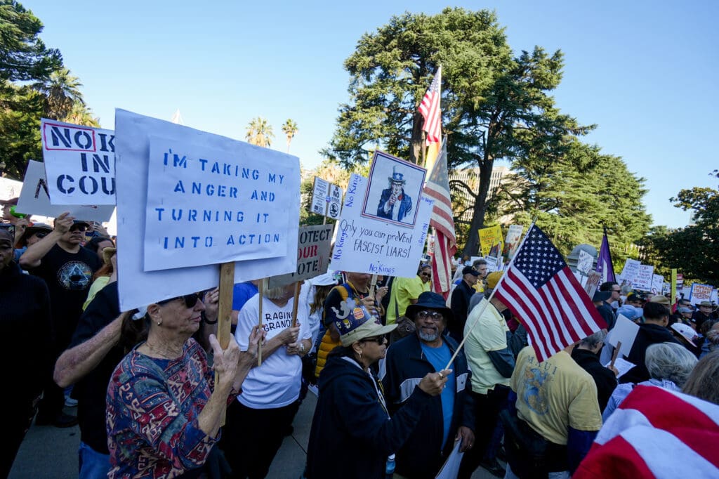 More than 5,000 people protested at the state Capitol on Saturday as part of a nationwide “No Kings” effort to oppose President Donald Trump’s policies, according to a preliminary estimate by organizers.