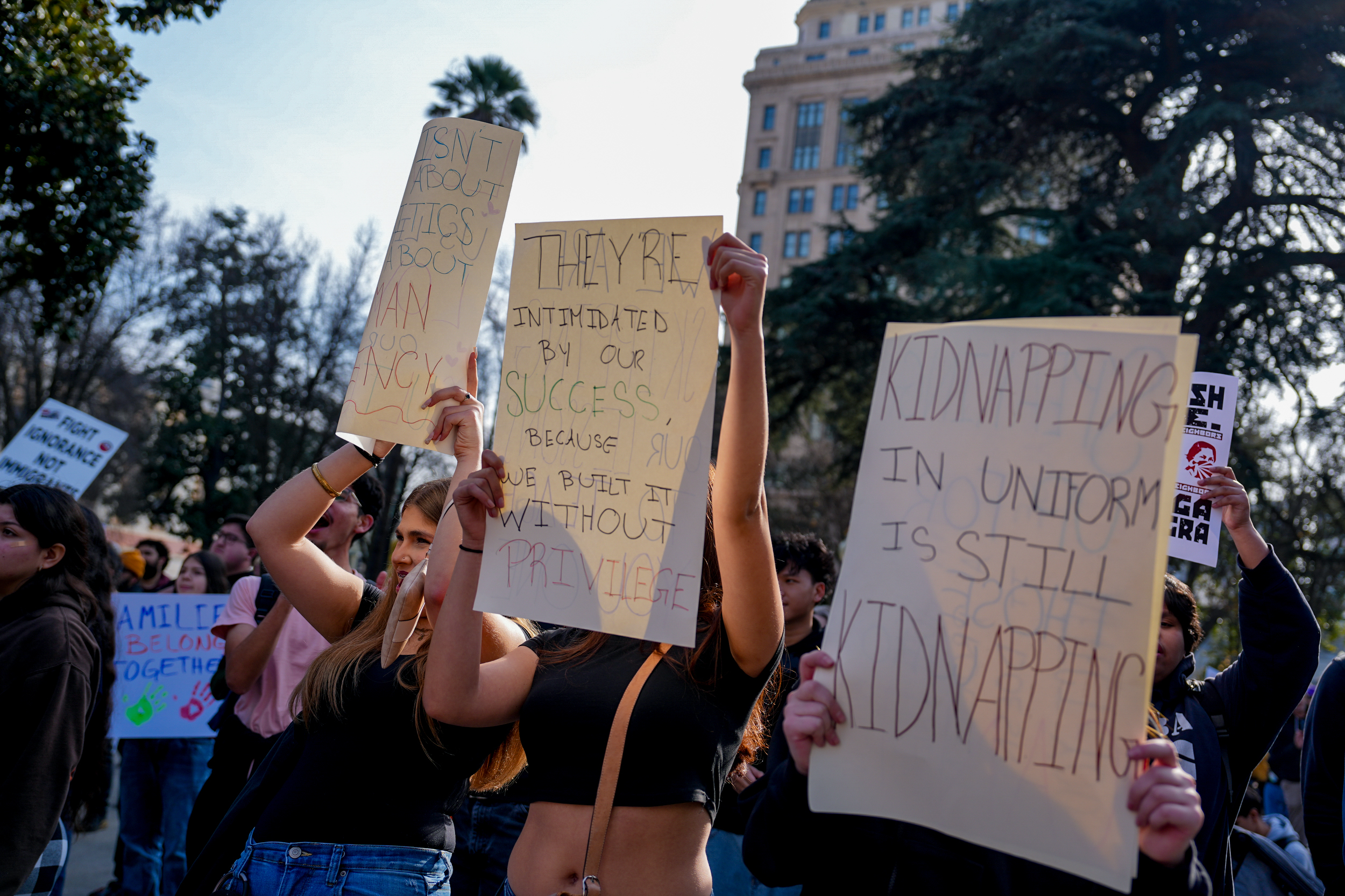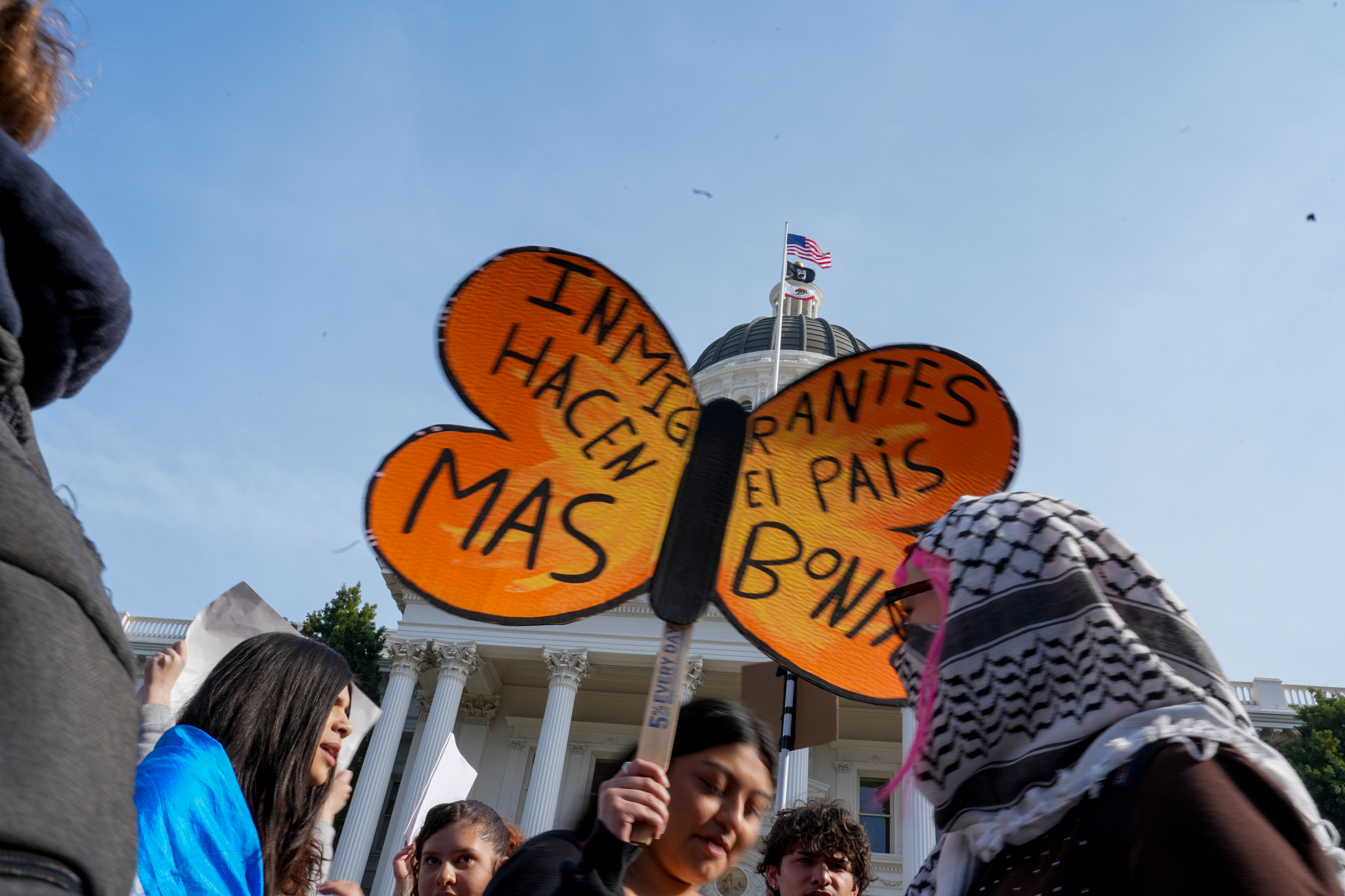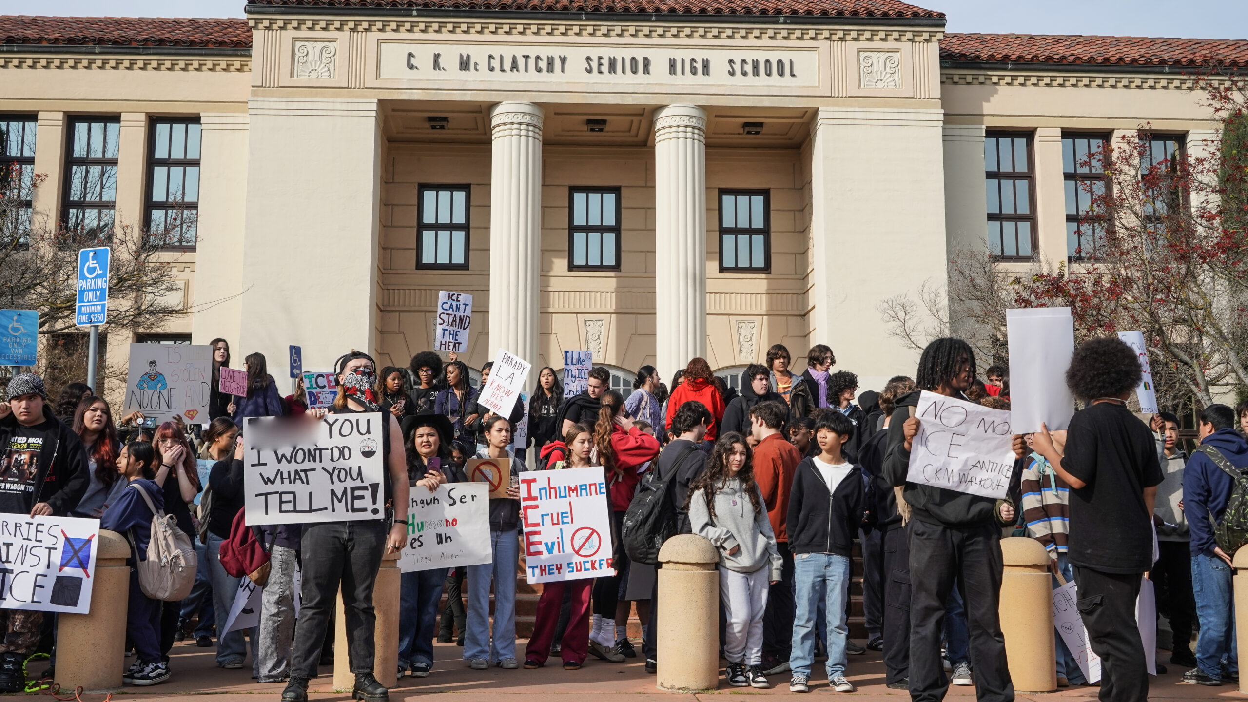 Students from at least 10 high schools across the Sacramento region walked out of school on Friday to protest U.S. Immigration and Customs Enforcement and federal immigration policies. Many took public transit from school to the Capitol, where they gathered for speeches, then continued to march to the John Moss Federal Building.