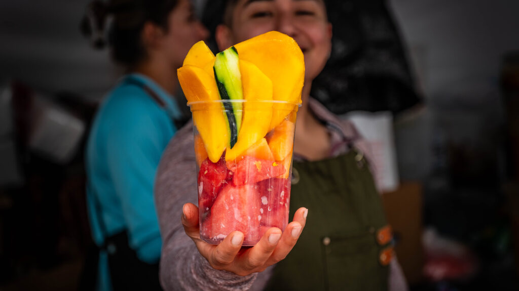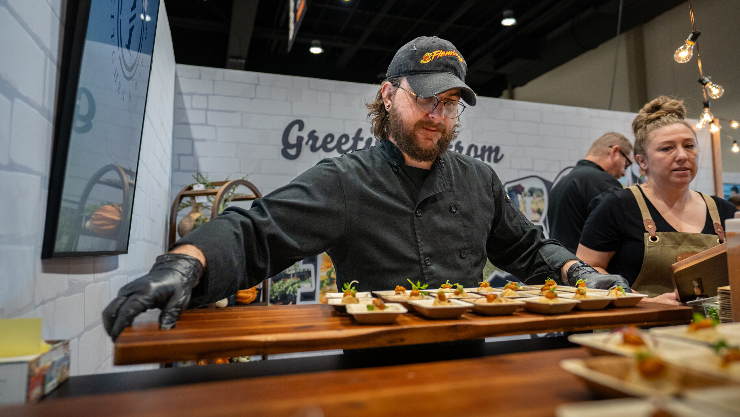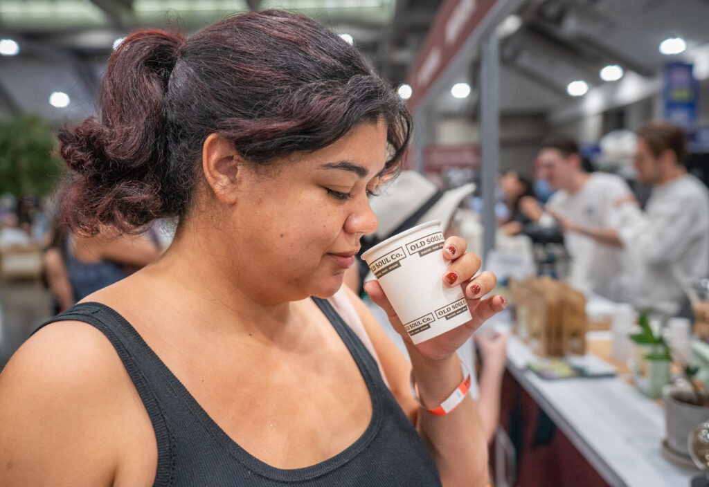Aaron Johnson of Prelude gives out samples at the Terra Madre Americas Marketplace on Friday, Sept. 26, 2025.