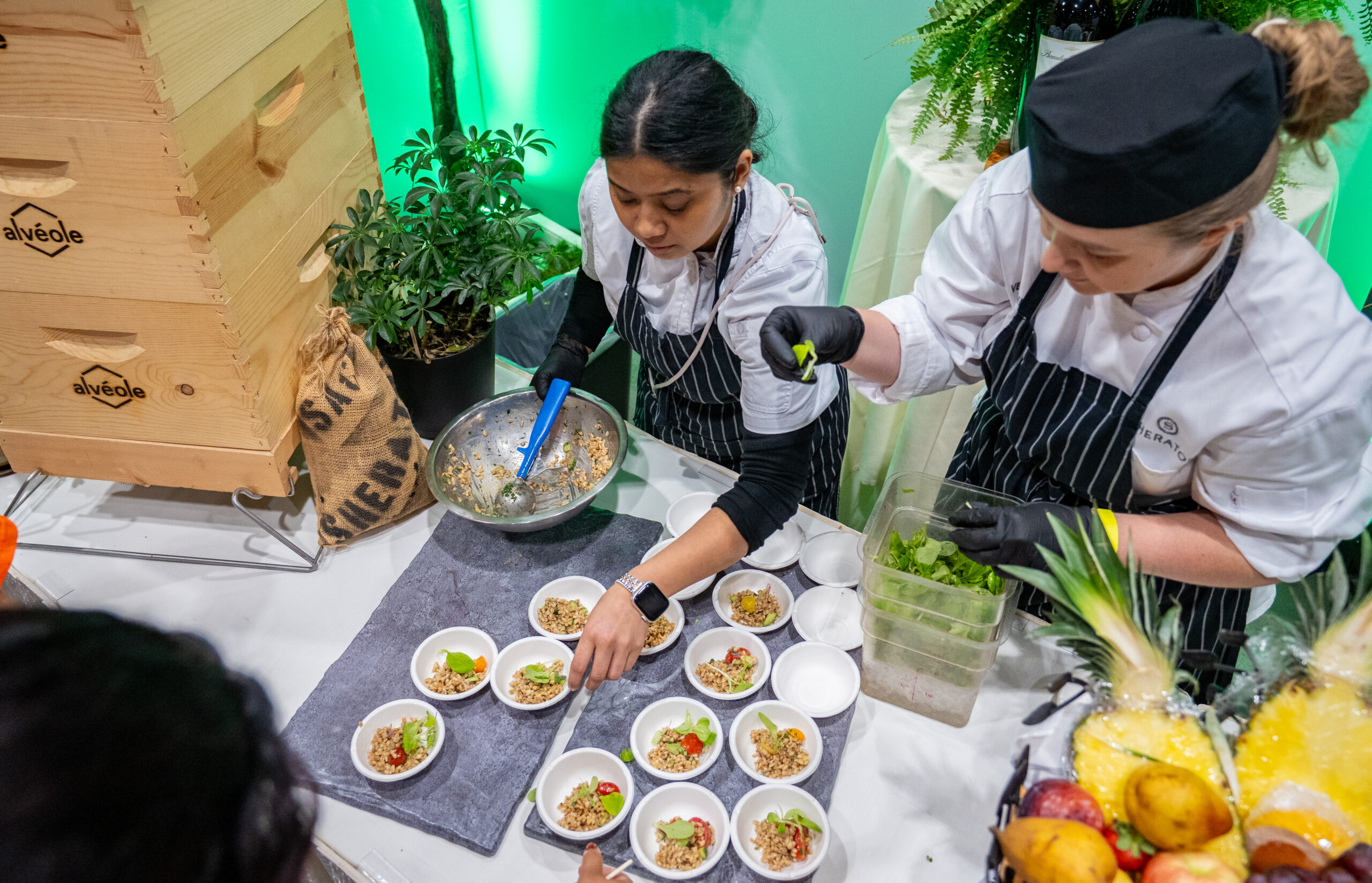 Booth offering farro salad samples at the Terra Madre Americas Marketplace on Friday, Sept. 26, 2025.