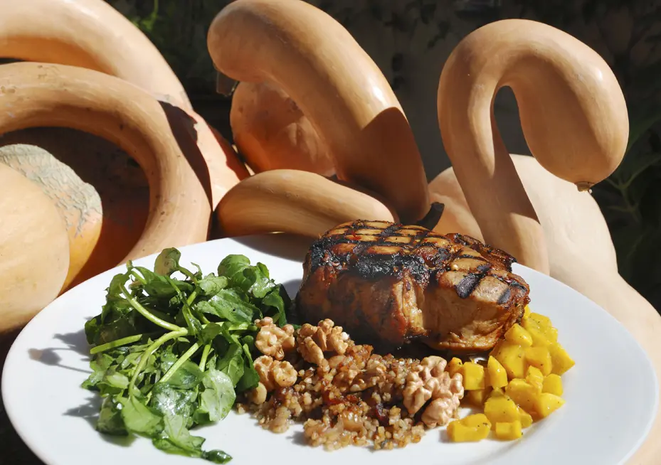 Mulvaney’s pork chop sides change with the seasons, but the Bledsoe Meats double-cut is always on the menu. (Mulvaney’s B&L)