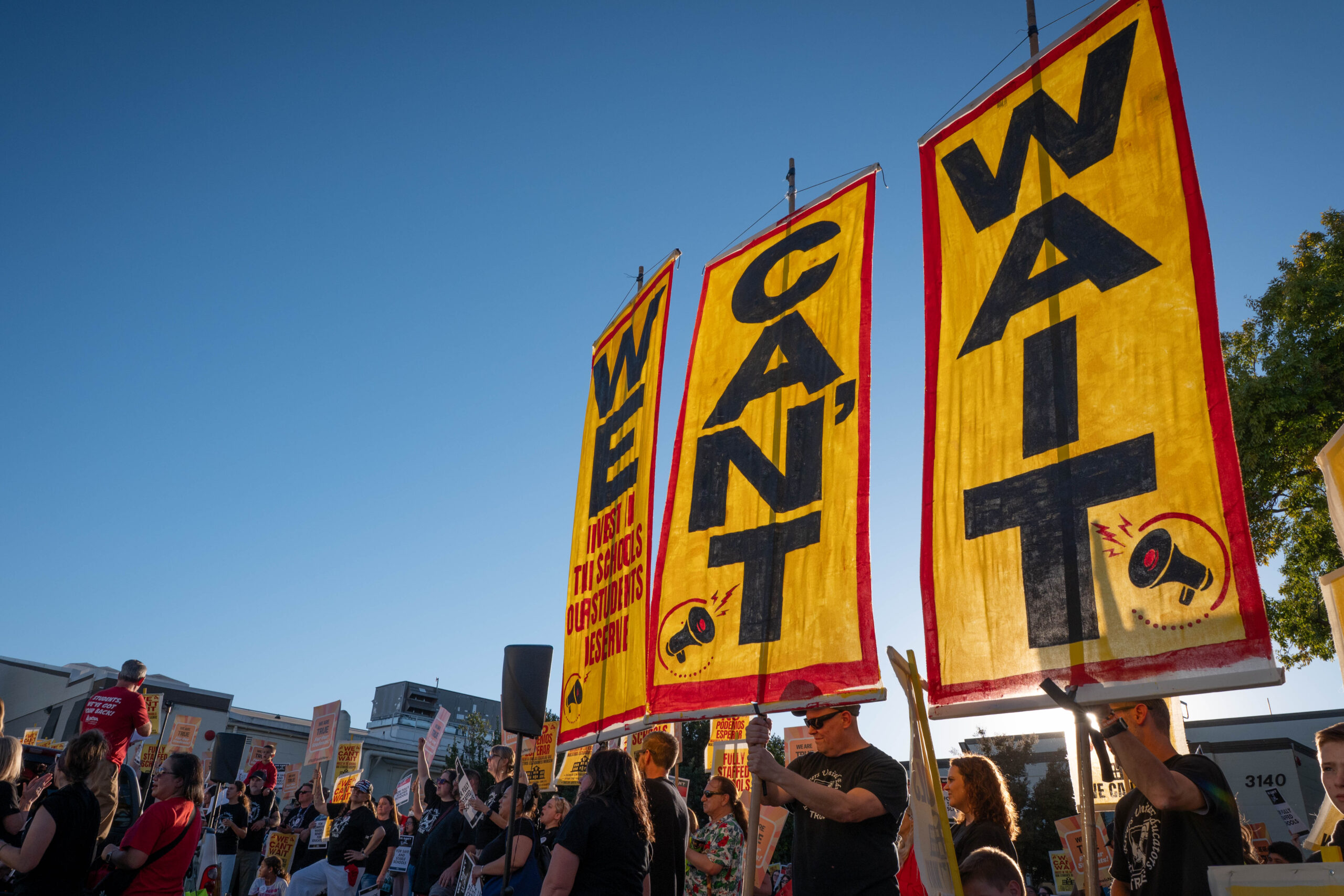“We can’t wait,” the crowd of parents, teachers and community members chanted.