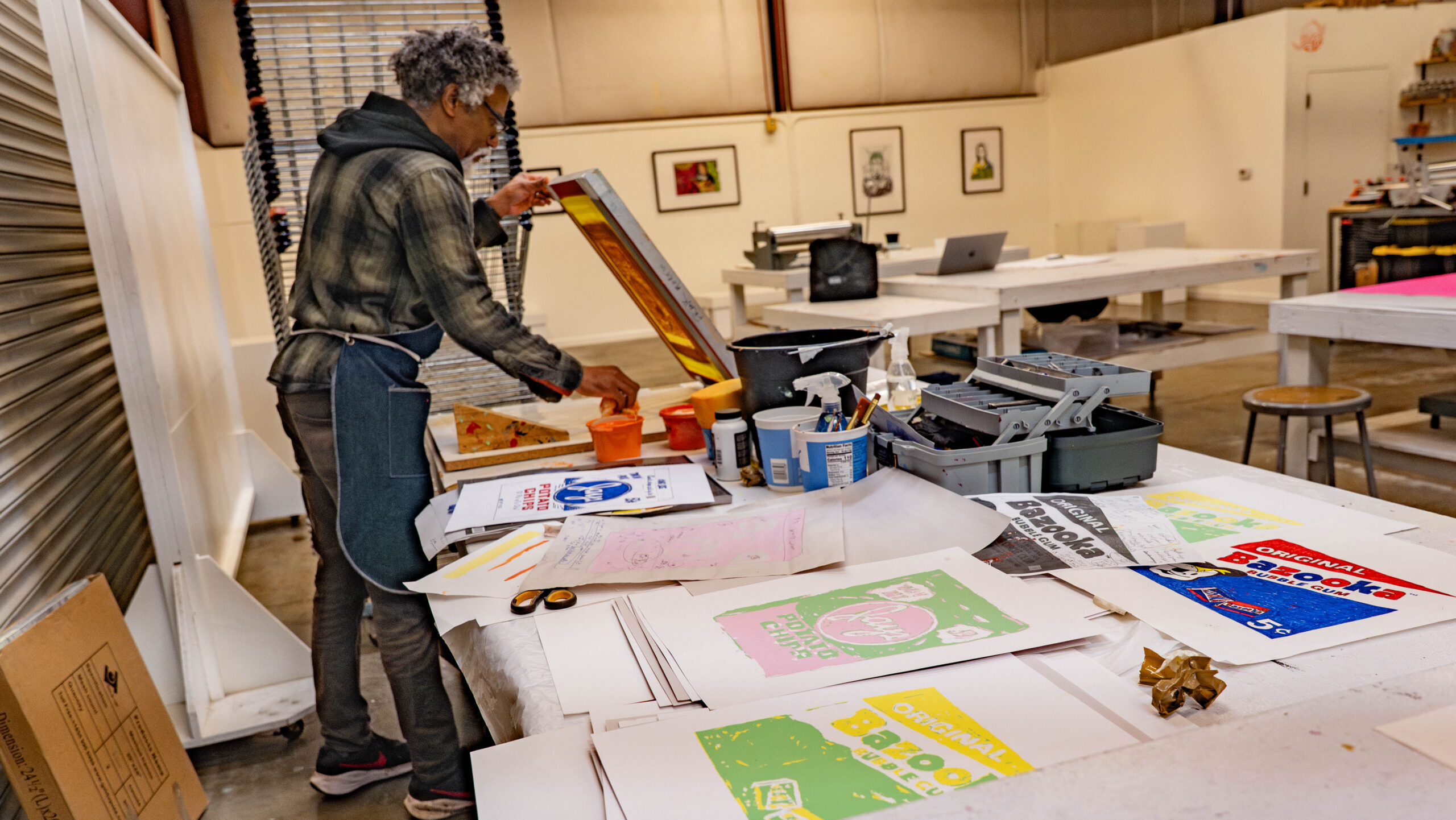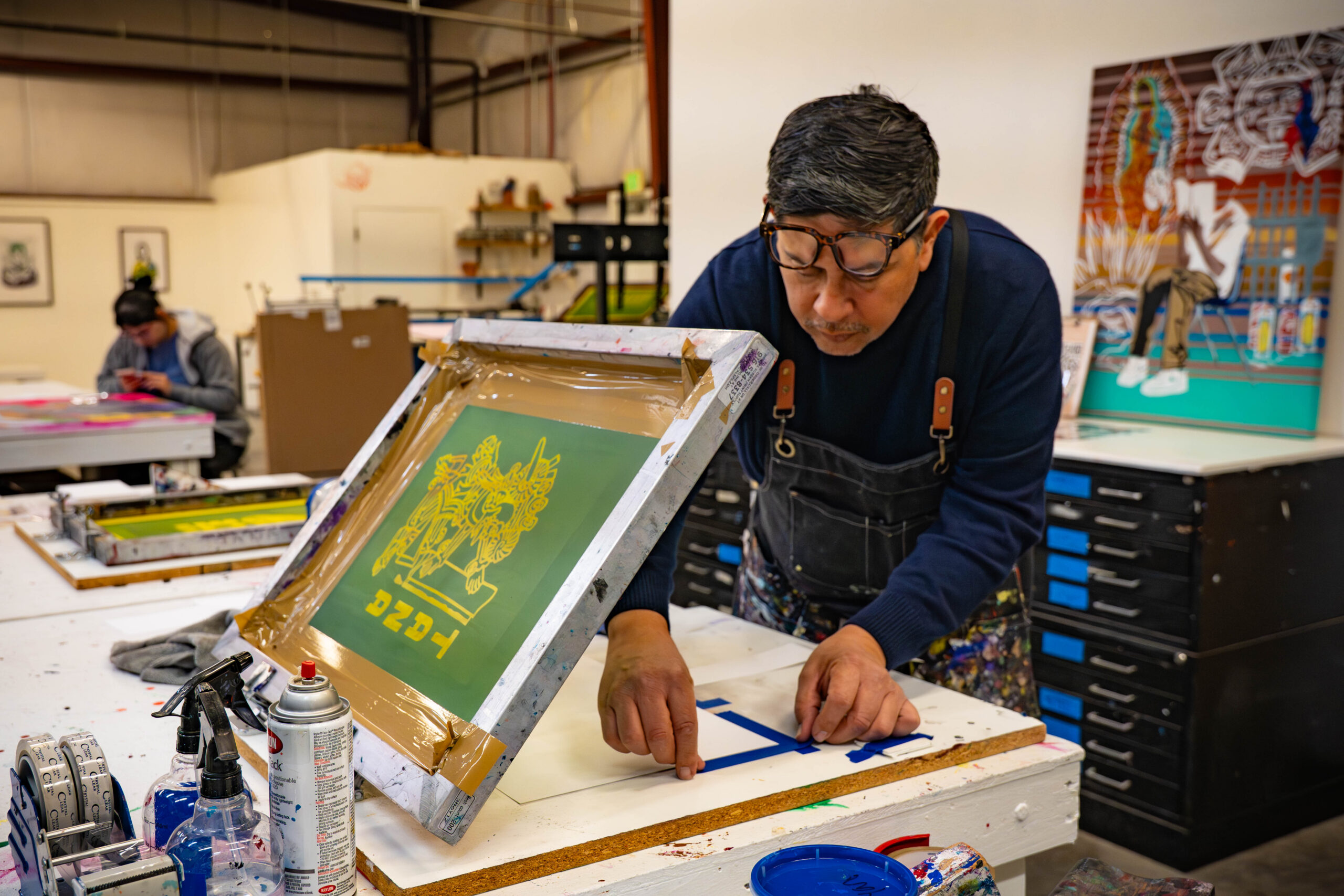 “Taller,” Spanish for workshop or studio, is the second brainchild of its kind by artist, activist, muralist, and community builder Malaquias Montoya. An early member of the Royal Chicano Air Force (RCAF) art collective, Montoya has been organizing workshops and activist groups and establishing community studio spaces since the 1960s.